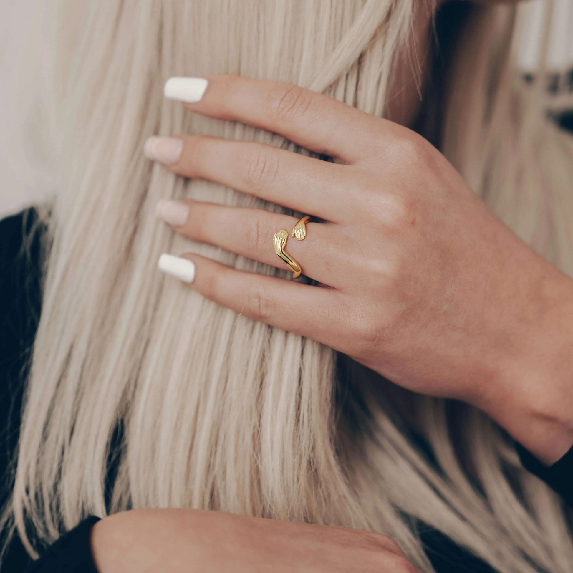 This beautiful hug ring in silver, gold, and rose gold belongs to our adjustable ring category. It's size-adjustable and can be personalized.