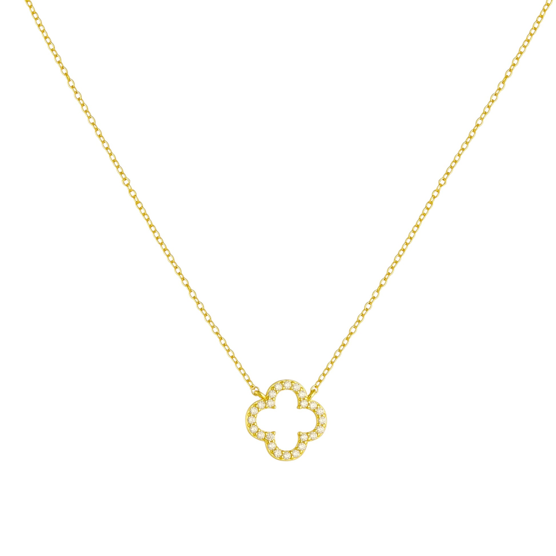 Vervollständige deinen perfekten Look mit der Zirkonia Kleeblatt Halskette.